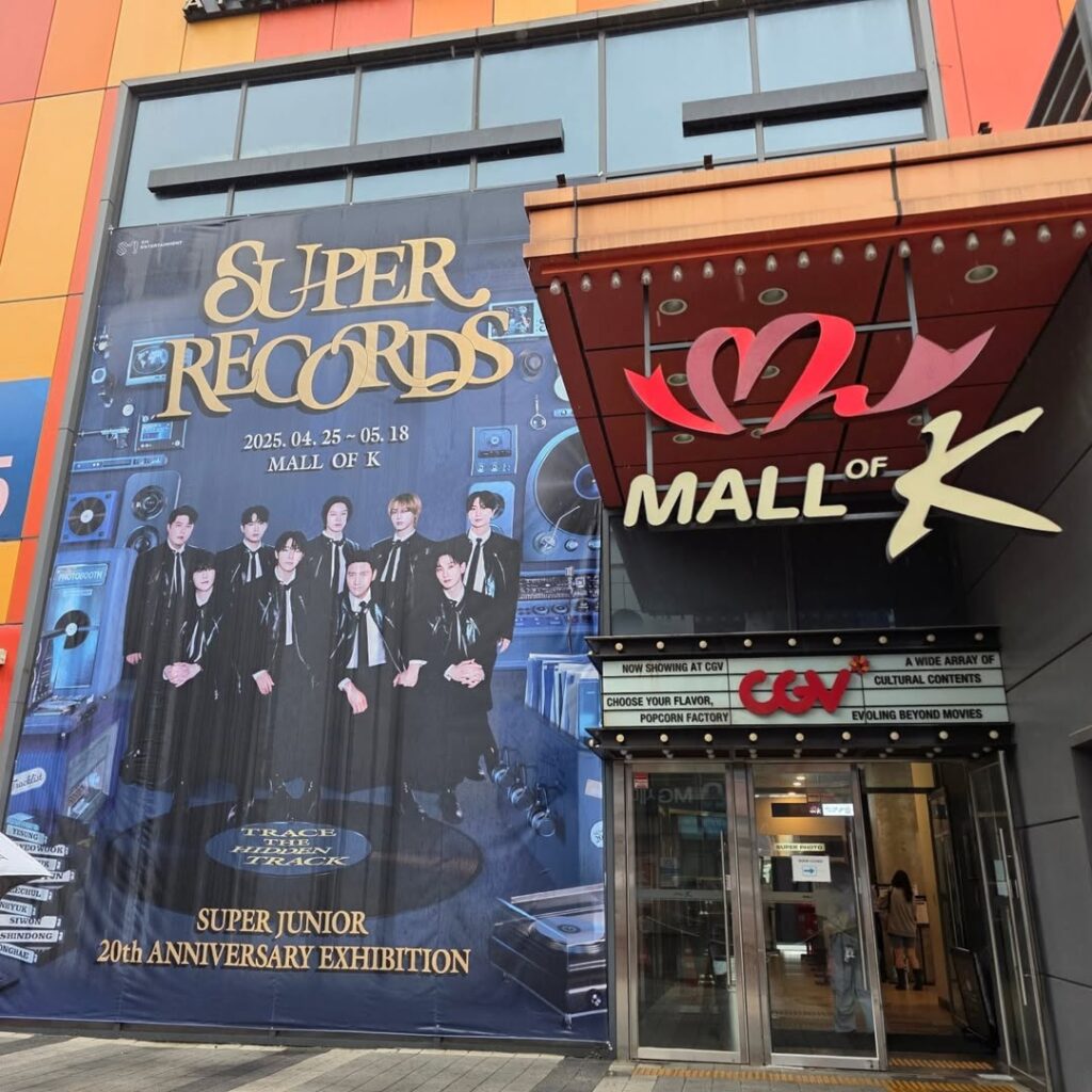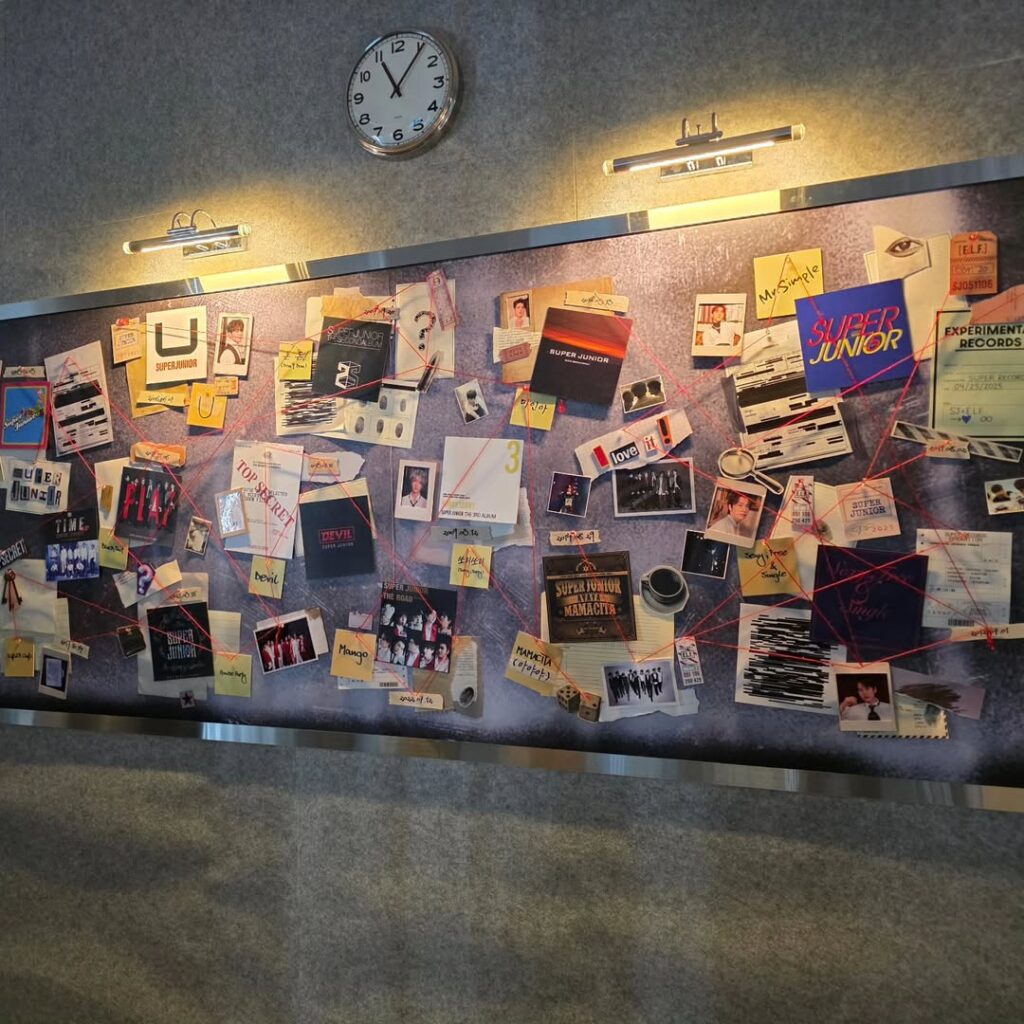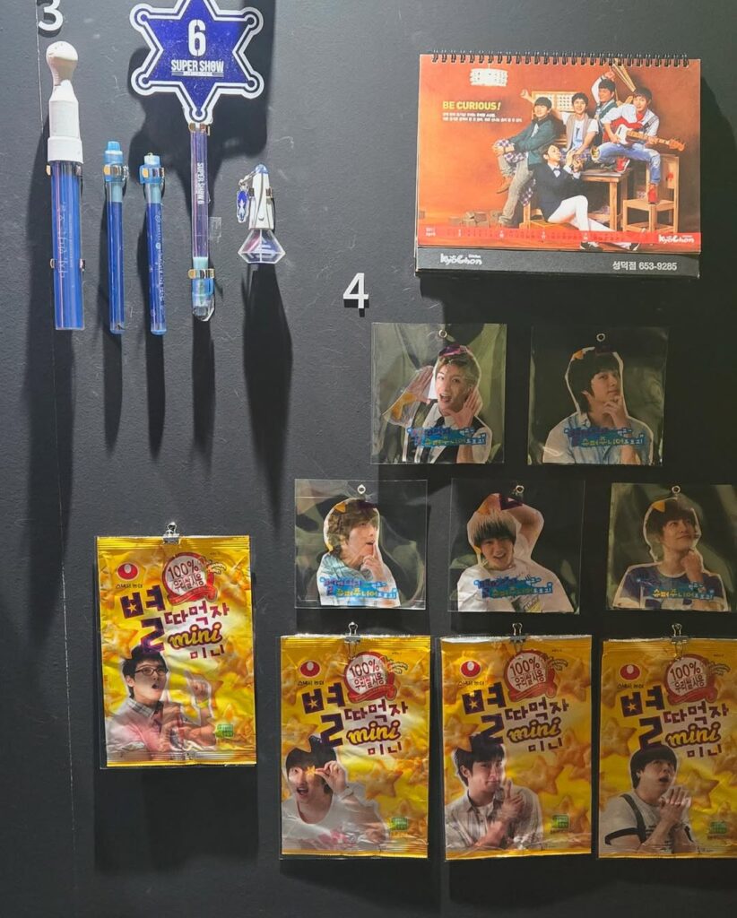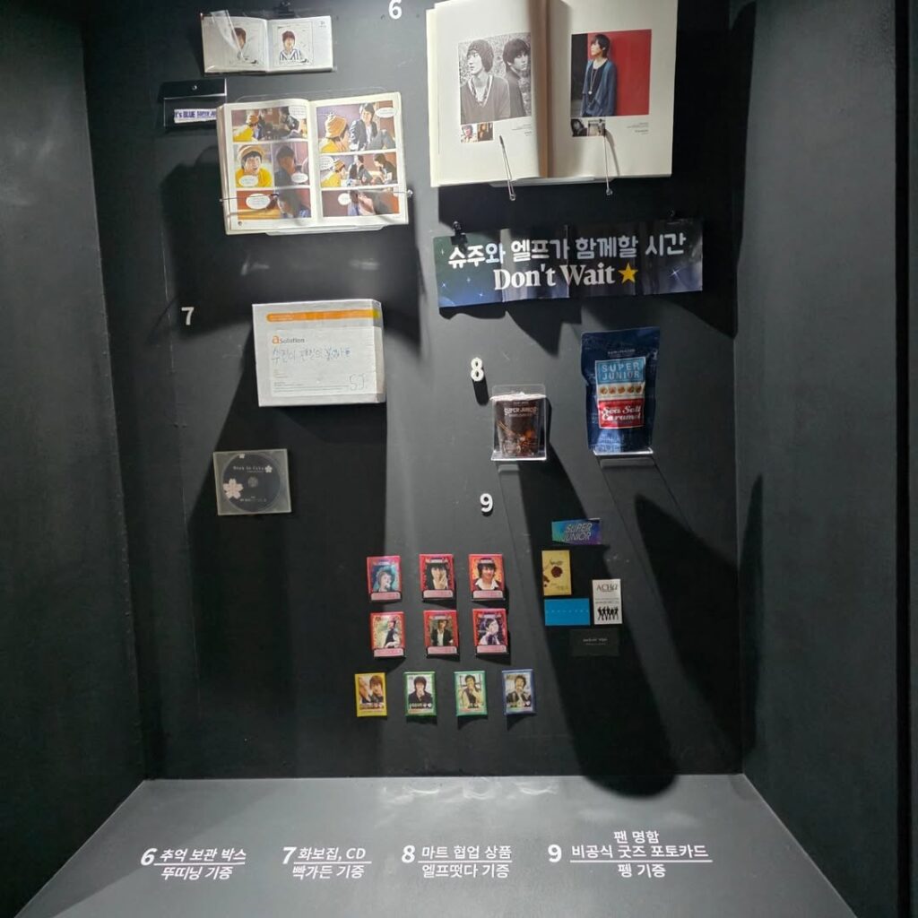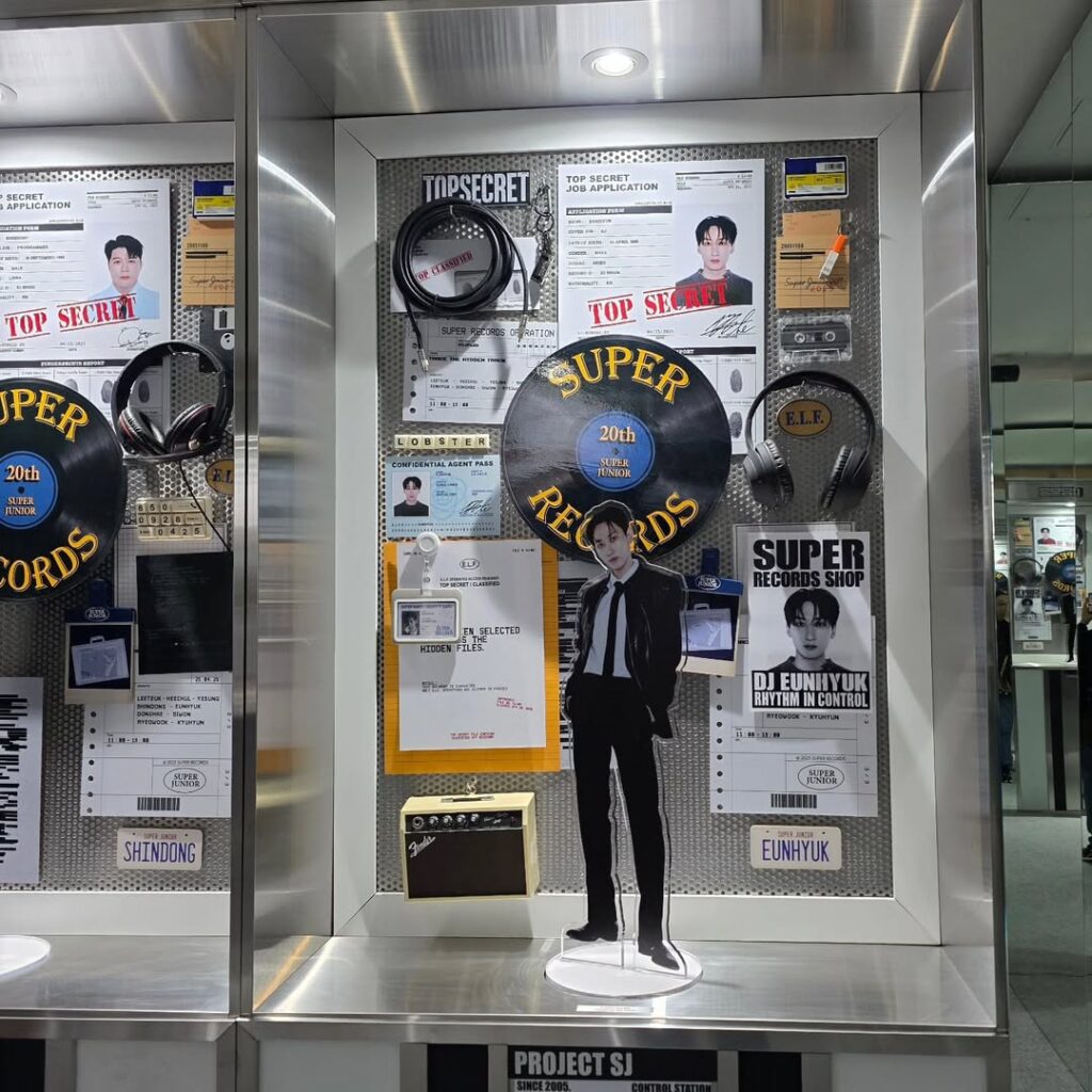 A exposição exibe álbuns do grupo, lightsticks, ingressos, revistas, produtos com o nome do Super Junior e vários outros itens.